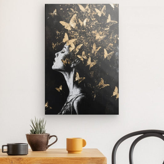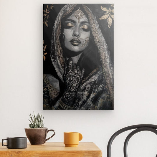 Tableau Visage Femme Énigmatique Noir et Blanc