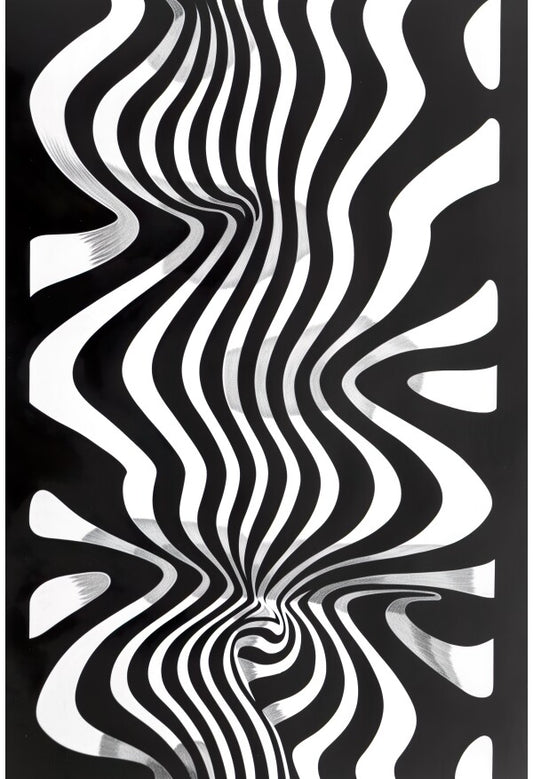 Tableau Abstrait Ondulations Noir et Blanc